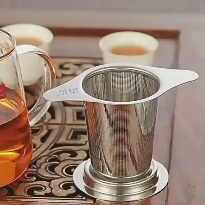 Jedes Set enthält einen Teefilter mit ergonomischem Doppelgriff, eine praktische Basis und einen Deckel.